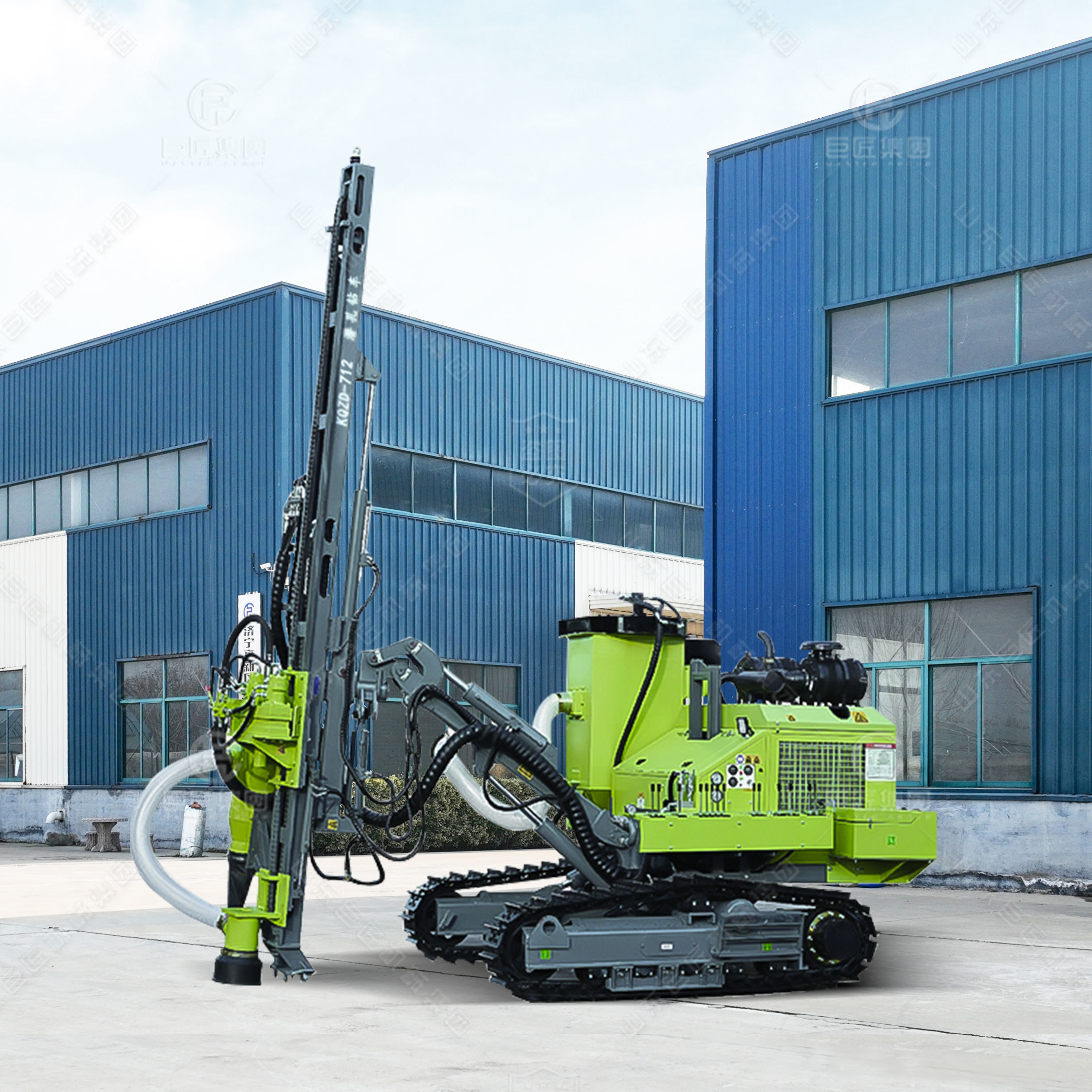 9.KQZD-712潜孔钻车是在秉承同类产品优点的同时,进一步优化产品设计,推出的一款设计紧凑、操作方便、性能卓越的产品。折边履带架和工程四轮一带,履带调平,导轨倾斜安装,每一处优化升级都是站在客户的角度深思而得。